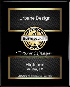 The Best of BusinessRate 2025 designation places Urbane Design Studios among the most highly regarded interior designers in the Austin area, reinforcing its reputation as a leader in both design excellence and client experience.